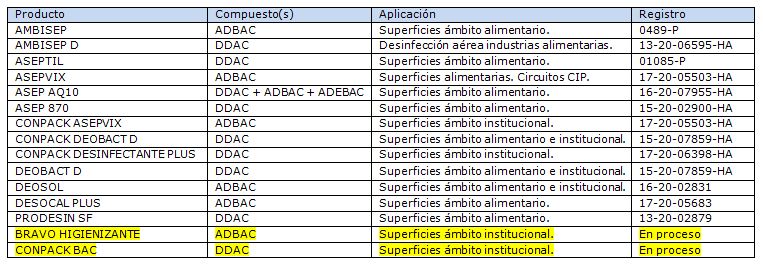 The fifth generation of quaternary ammoniums comprises mixtures in different proportions of DDAC and ADBAC to obtain a wide range of action against the maximum number of micro-organisms.